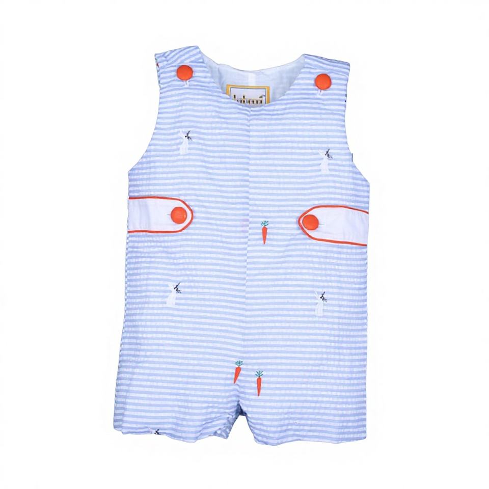 Combinaison courte pour bébé Babeeni ODM, barboteuse pour bébé 100% coton, sergé, certifiée OEKO-TEX, sans manches, boutons-pression, broderie lapin carotte