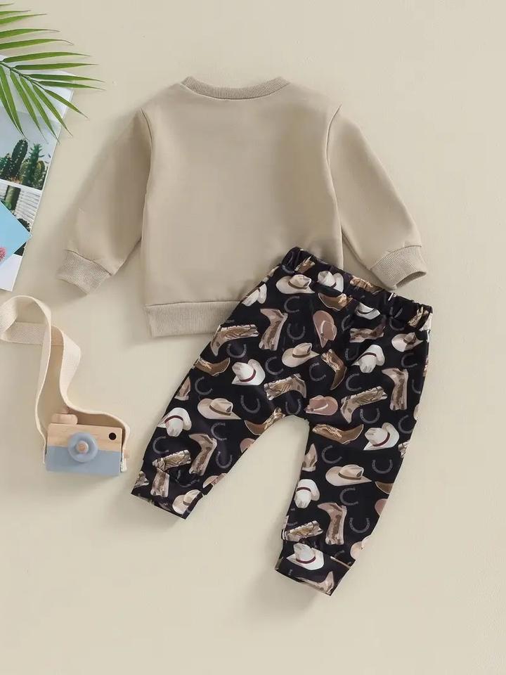 Ensemble de 2 pièces pour bébé, tenues d'automne, sweat-shirt et pantalon à manches longues de style occidental, vêtements d'extérieur pour tout-petits