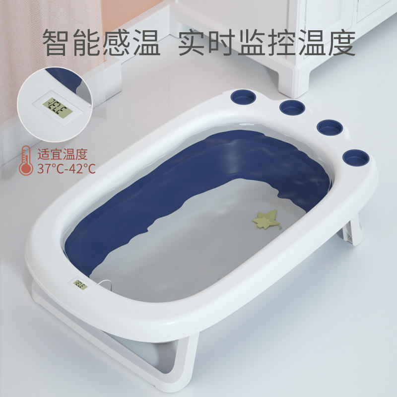 Baignoire bébé pliable extensible portable avec capteur de température pour nouveau-né 0-12 mois en plastique bleu rose