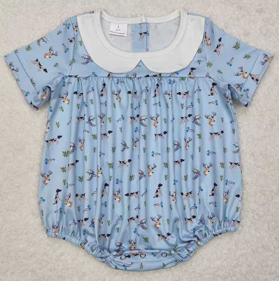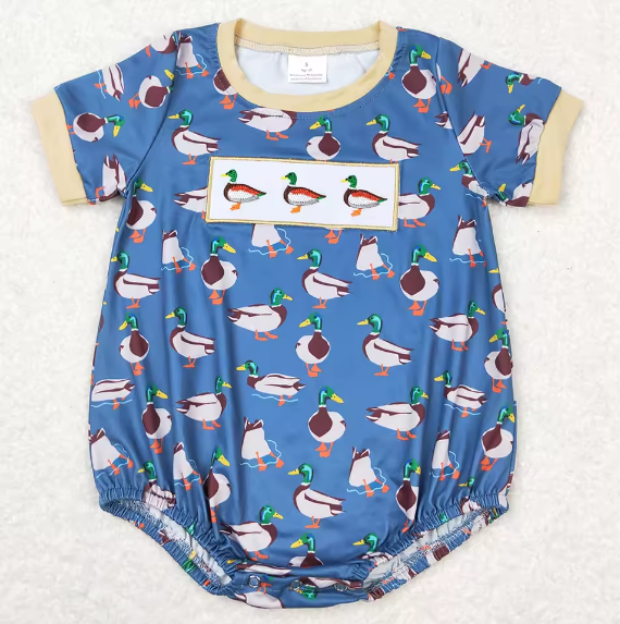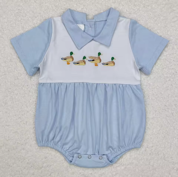 Combinaison à volants pour bébé garçon, bleu clair, avec col Peter Pan brodé d'un canard