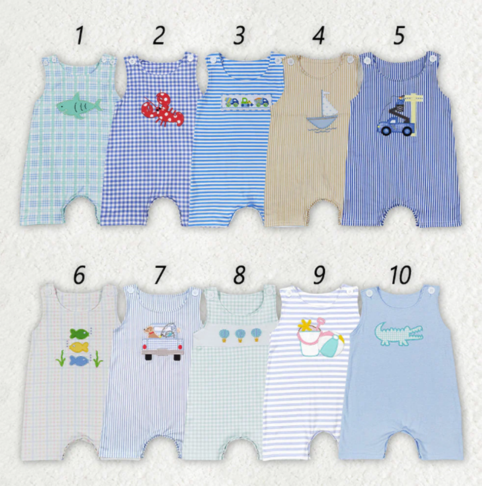 Combinaisons d'été pour bébés garçons, sans manches, broderie d'animaux, à carreaux, body rayé pour nourrissons, vêtements pour enfants