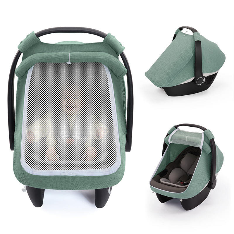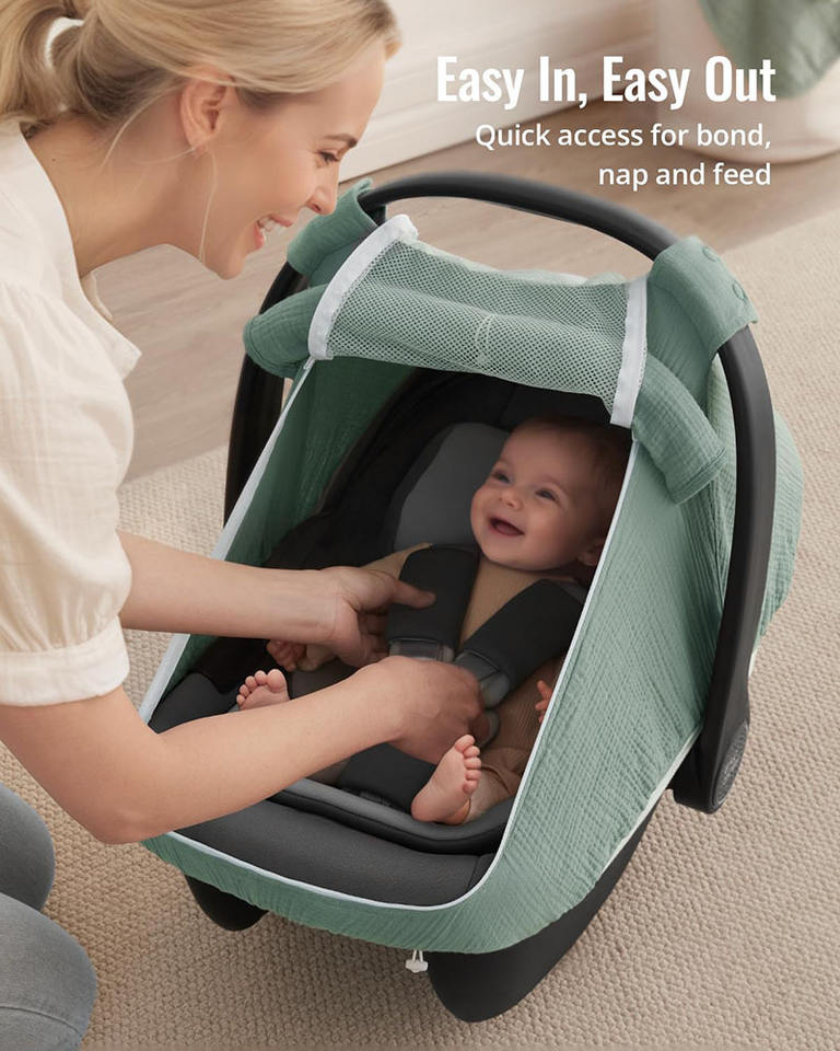 Baby Car Seat Cover with Breathable Mesh Window Windproof Infant Carseat Cover Kick-Proof Carseat Canopy Nursing Cover 2 in 1