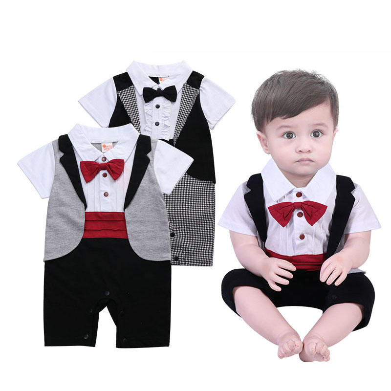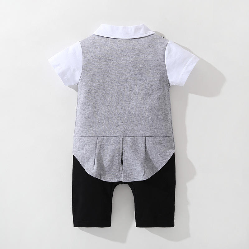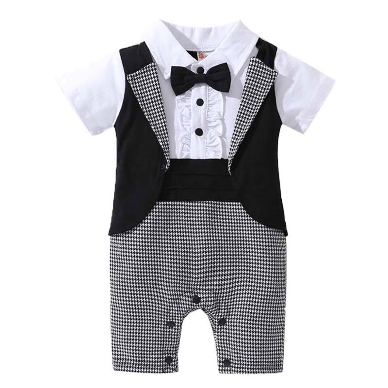 Ensembles de vêtements pour bébés, vêtements pour enfants de 3 à 18 mois, combinaison formelle pour gentleman, noir et blanc, manches courtes, barboteuse, smoking pour bébé garçon, BBRS-001