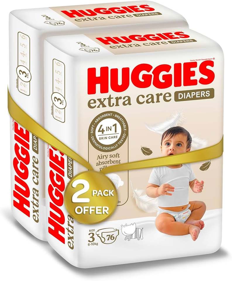 Couches pour bébé avec absorption supplémentaire Huggies Extra Care Garde bébé au sec et confortable toute la journée