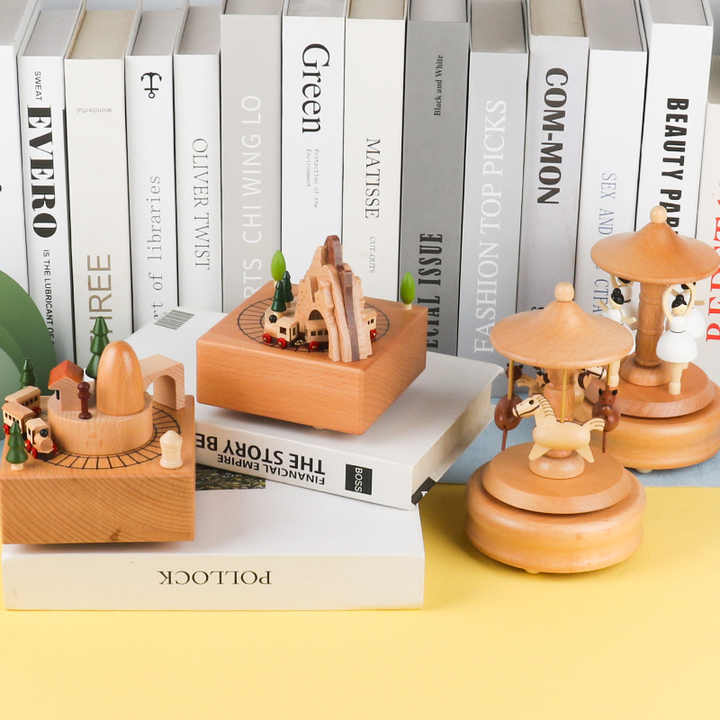 Cadeau pour bébé Le nouveau carton créatif traditionnel de haute qualité manège en bois Boîte à musique classique Jouet pour enfants