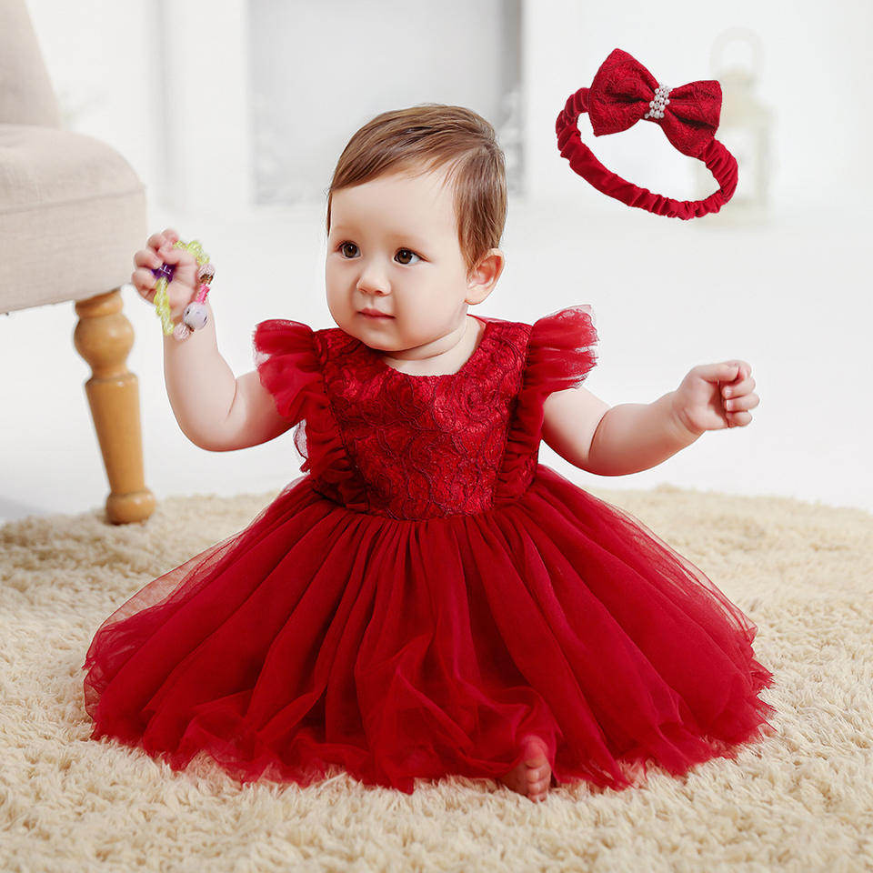 Robe de baptême pour bébé fille brodée, 0-2 ans, robe de fête d'anniversaire rouge moelleuse et magnifique