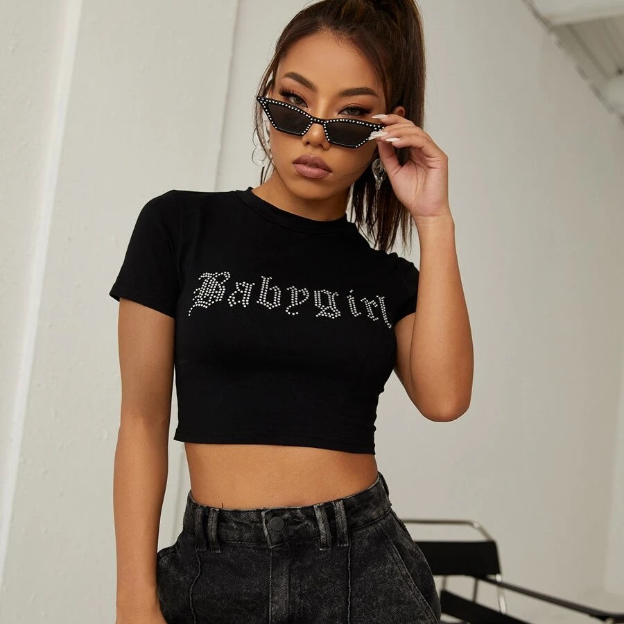 Haut Court Femme Personnalisé Fille Bébé en Strass à Col Rond pour Sport et Entraînement