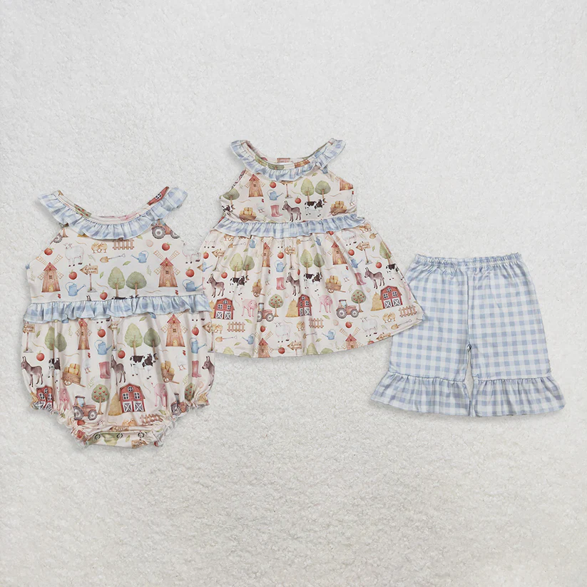 Ensemble haut à volants et short pour bébés filles, vêtements d'été pour enfants, animaux de la ferme