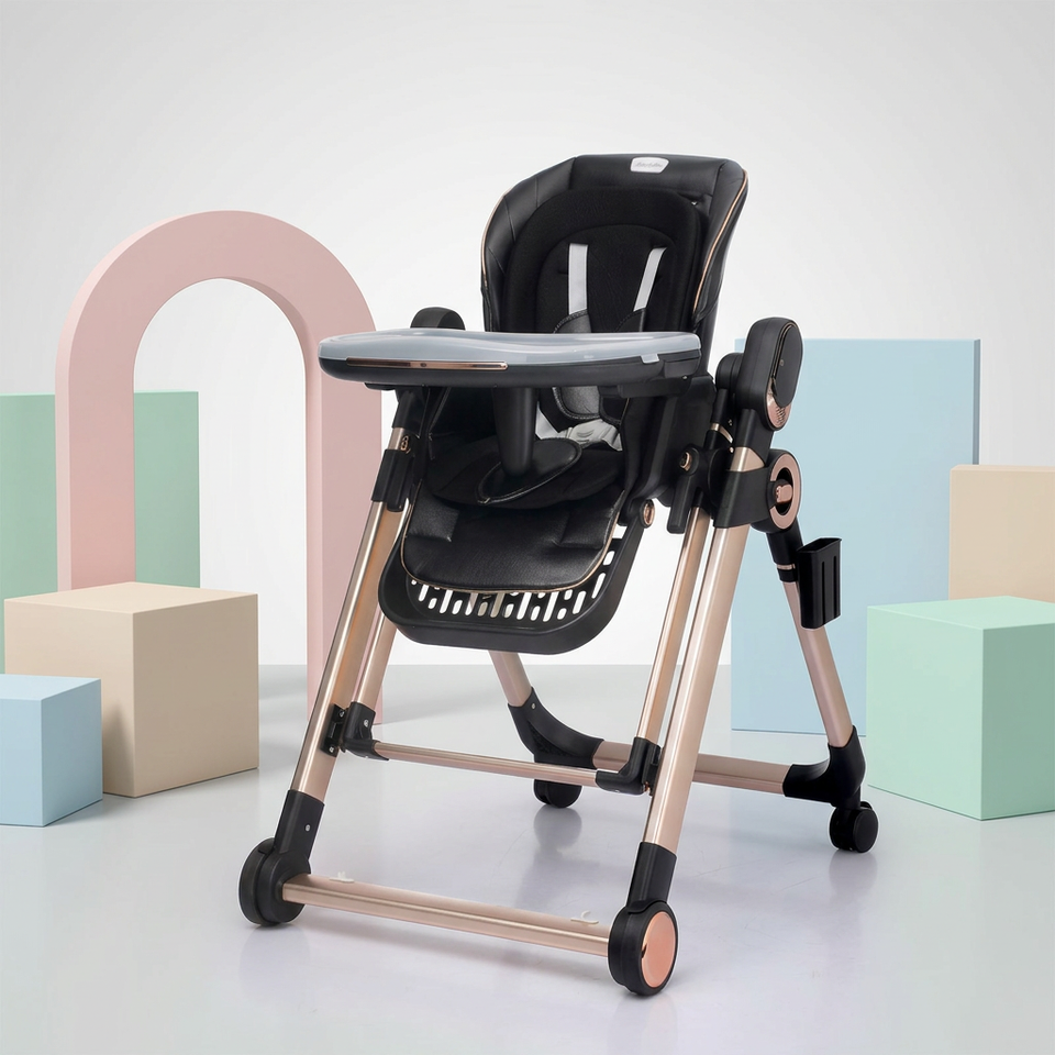 Chaise haute pour bébé avec plateau double couche, roues silencieuses universelles, hauteur réglable, cadre épaissi haut de gamme, ceinture de sécurité