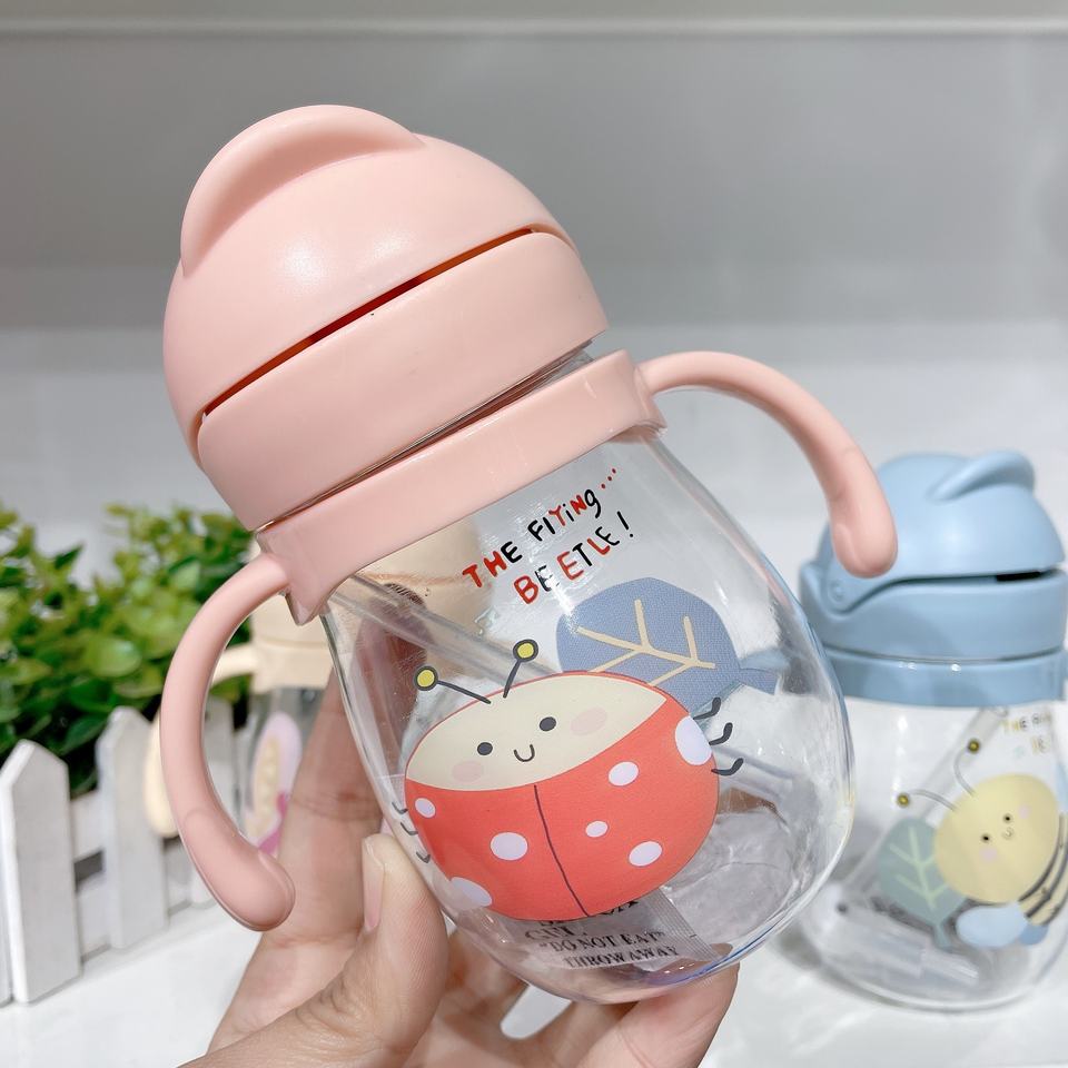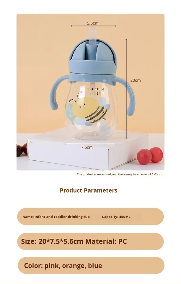 Tasse d'apprentissage pour bébé avec paille, motif dessin animé mignon, anti-étouffement, à gravité, avec poignée résistante aux hautes températures pour enfants