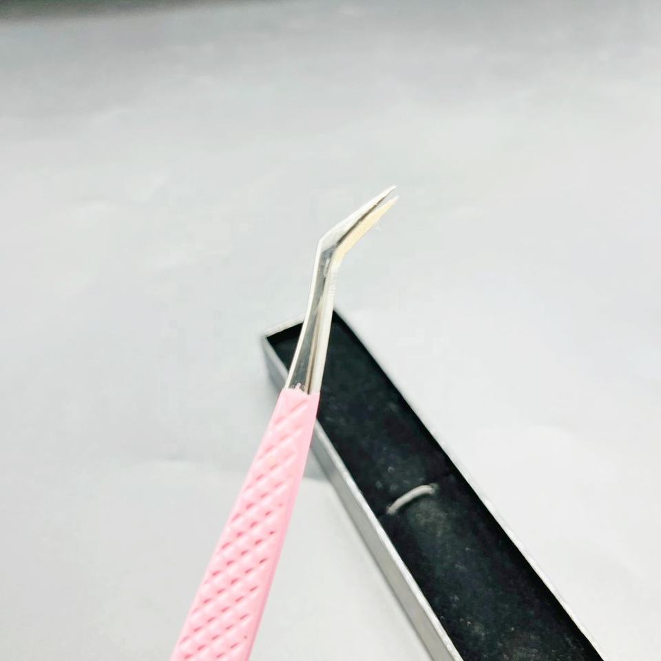 Extension de cils en poudre rose pour bébé méga pince à épiler durable en acier inoxydable à long volume pince à épiler dentée