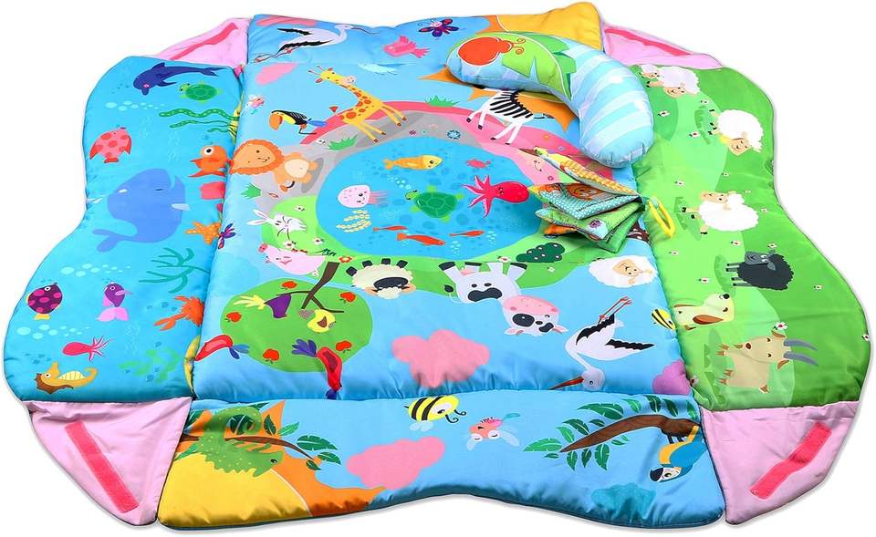 Tapis de jeu pour bébé Plus Miroir et oreiller Livre musical Bassin à balles 5 en 1 Activité Gym Tapis rampant pour les tout-petits nouveau-nés