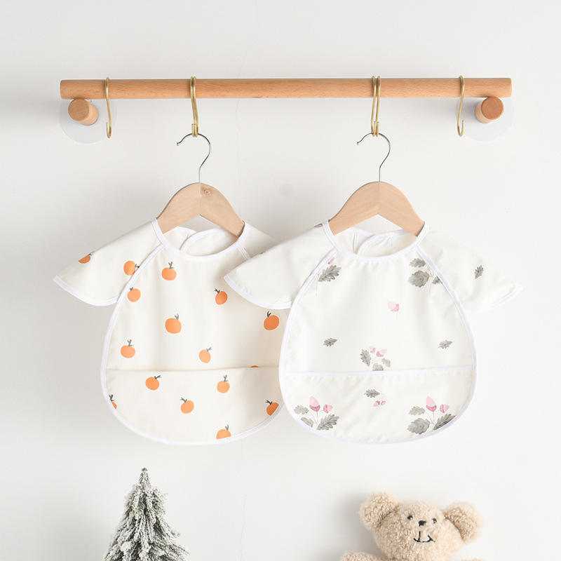 Bavoir imperméable à l'eau pour bébé, bavoir pour manger avec des ailes d'ange, bavoir imperméable en PU, salopette à manches courtes
