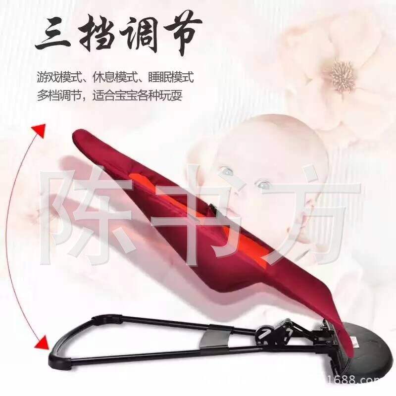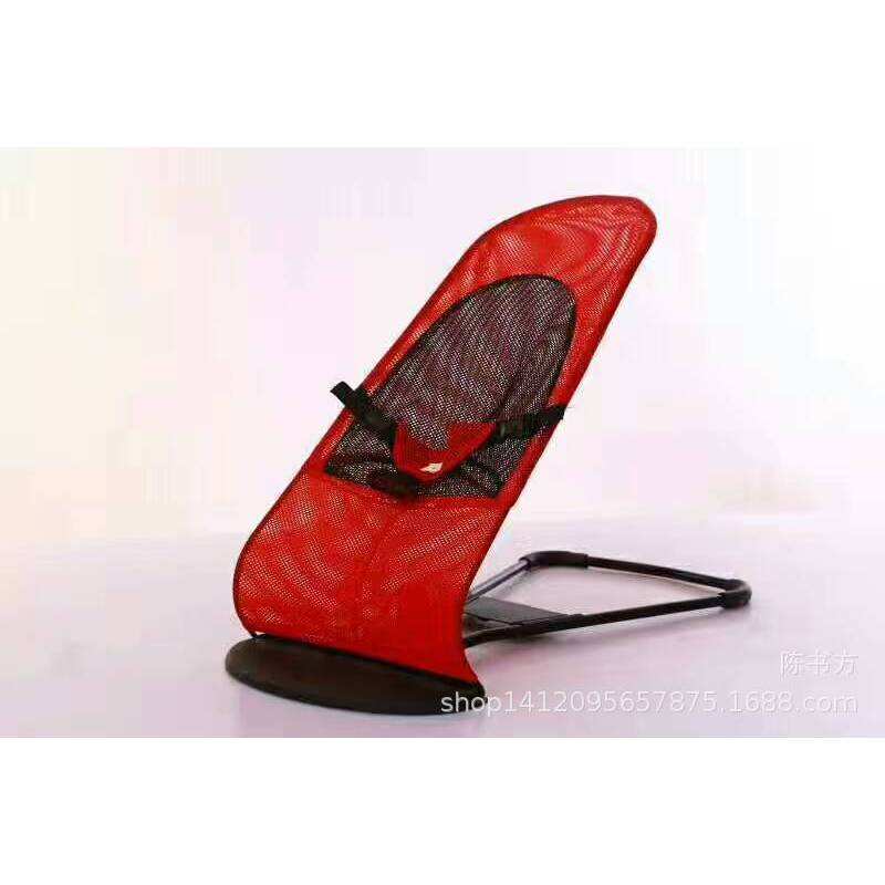 Baby Rocking Chair Lightweight Foldable Reclining Adjustable Backrest 0-12 Months Red And Black Metal Frame