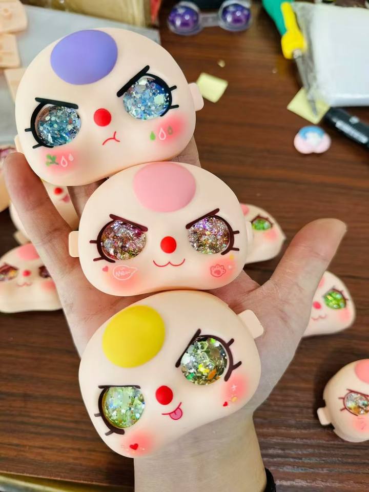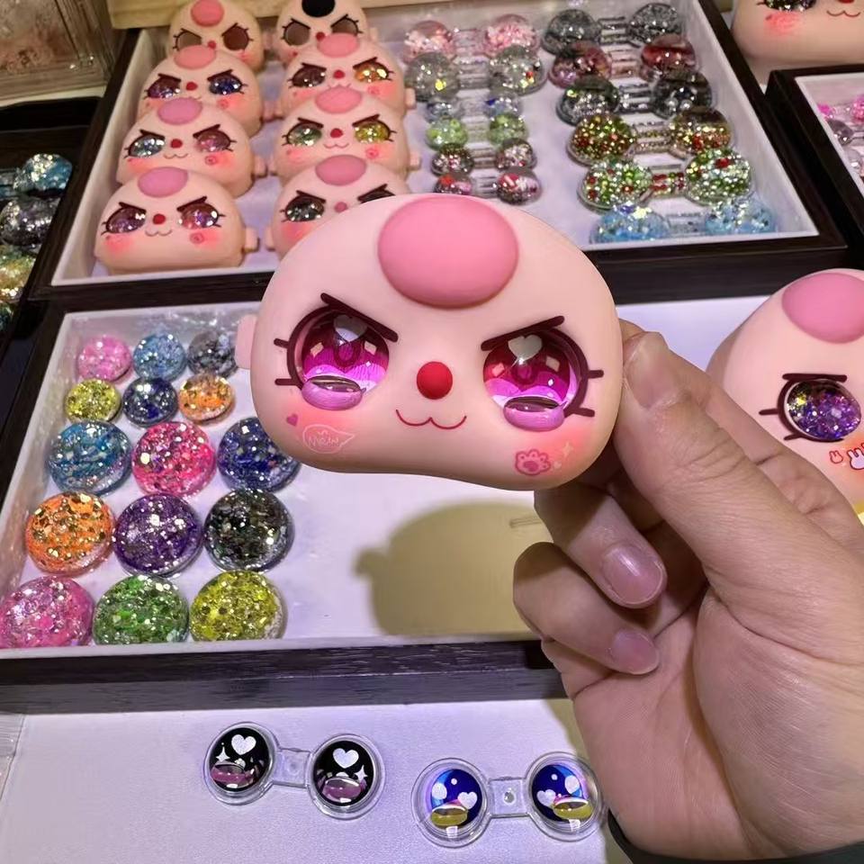 Accessoires pour bébé : visage avec larmes, coquille faciale avec sable mouvant, cheveux bleus, cheveux noirs, cheveux jaunes, cheveux violets, cheveux roses.