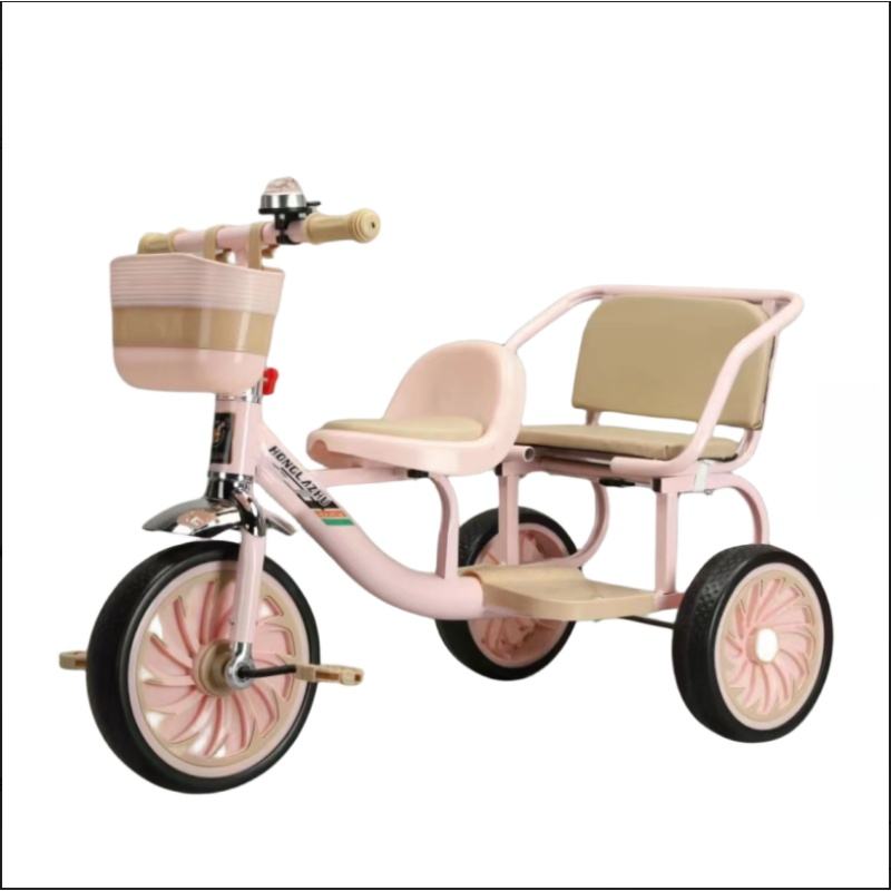 Tricycle pour bébé avec siège arrière pour jumeaux, frères et sœurs, jeu en commun, guidon réglable en hauteur, cloche de style boussole, plastique