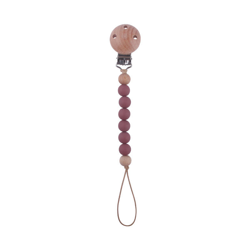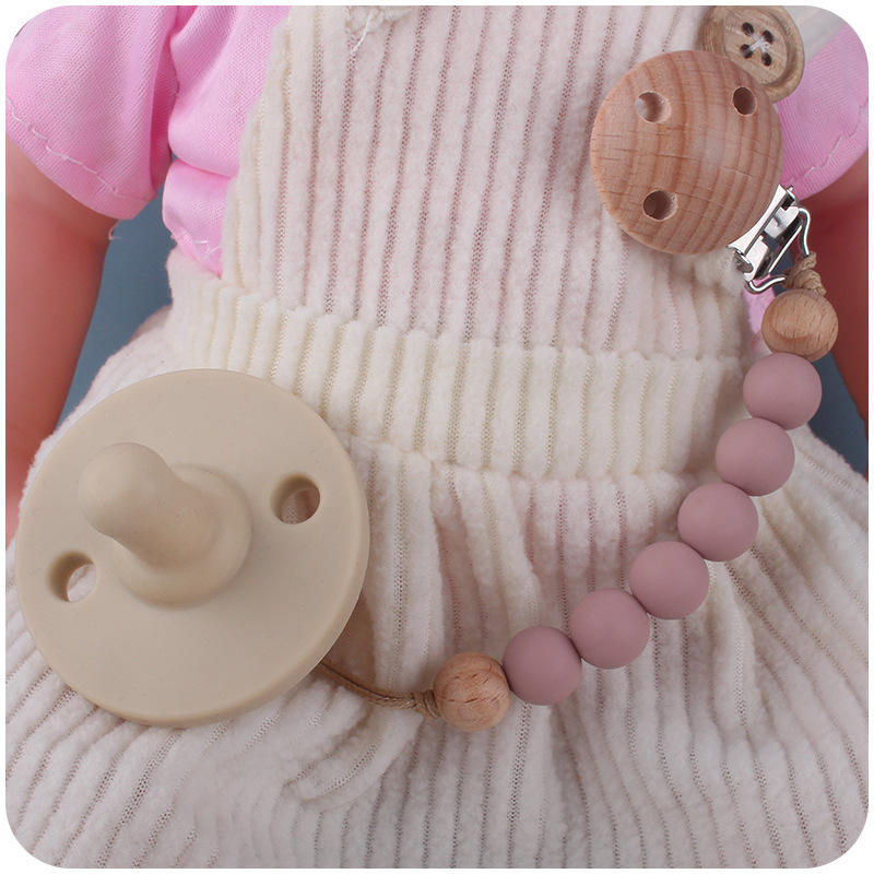 Attache-sucette en bois pour bébé avec perles en silicone sans BPA, 0-12 mois, chaîne de couleur unie pour nourrissons