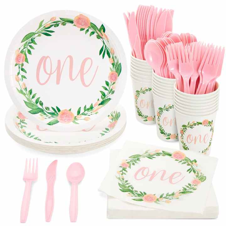 Bébé premier anniversaire un an filles fête vacances fournitures vaisselle jetable couteau fourchette cuillère papier tasse assiette serviette Kits