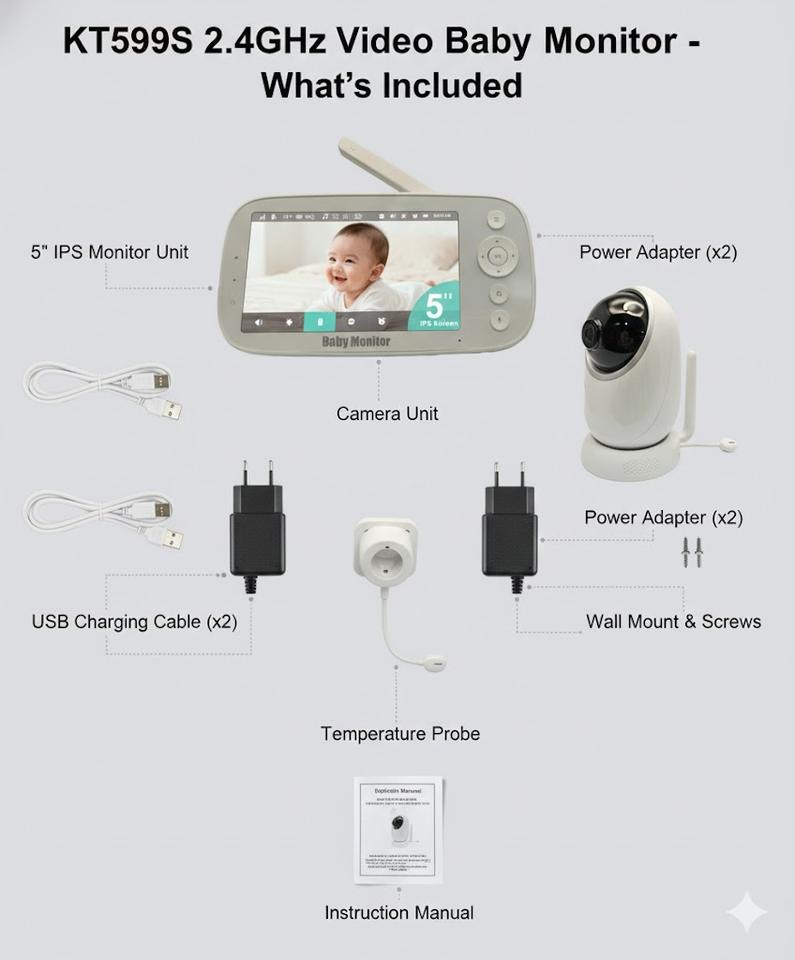 Night Vision, Two-Way Audio, Temperature monitoring, Feeding Reminder, Video Recording, Wall Mountable, 2 white noiseSpecial Features