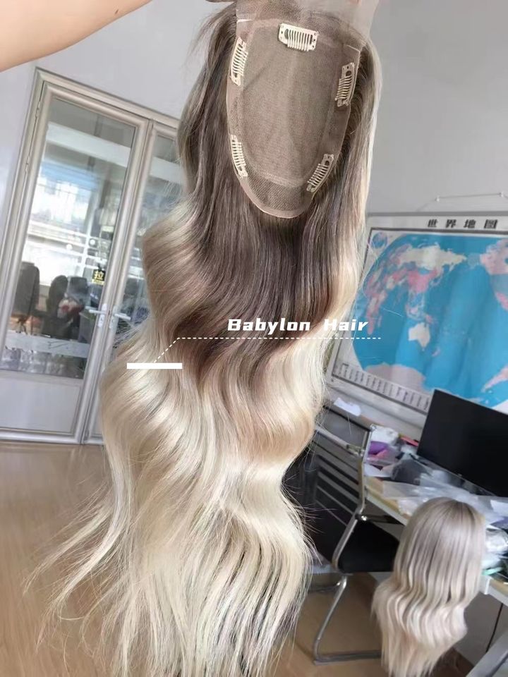 Name:Ombre Ash Blonde Color Wave Lace Toppers With Silk Base