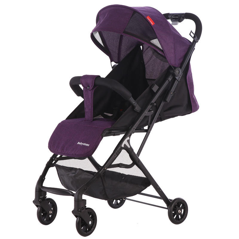 Poussette Bébé Babystone T6 High View Cadre Métallique Violet Capacité 25kg Pliable Portable