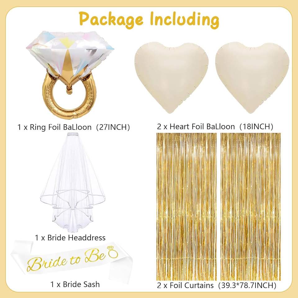 Kit de Décorations pour Enterrement de Vie de Jeune Fille : Écharpe « Future Mariée », Voile, Autocollants Tatouages, Rideaux Métallisés, Ballons – Fournitures pour Fête Prénuptiale