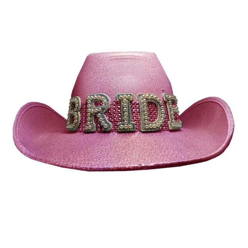 Chapeau de cowboy/cowgirl rose pâle pour la mariée de luxe avec strass pour enterrement de vie de jeune fille