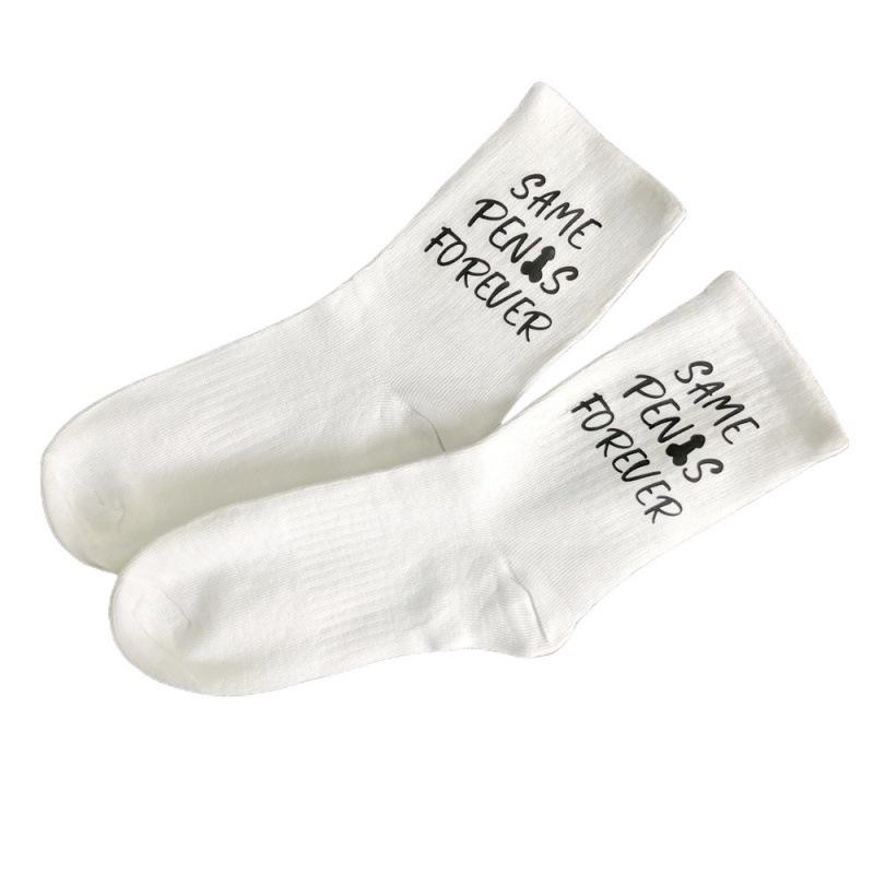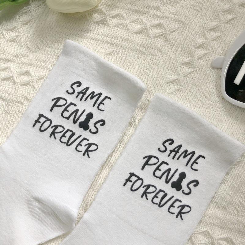 Chaussettes de fête pour enterrement de vie de jeune fille, décorations de mariage, cadeaux personnalisés amusants pour la mariée avec message, chaussettes fantaisie « Même pénis pour toujours »