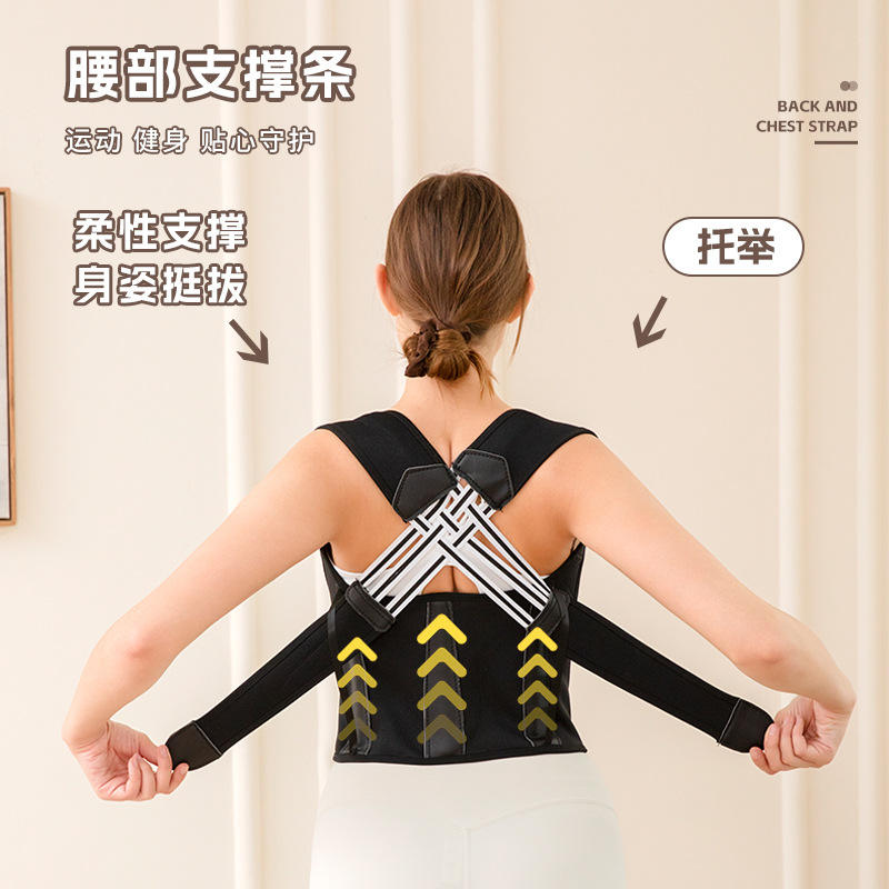 Correcteur de posture pour le dos et la poitrine pour adultes, en nylon et spandex noir, enveloppant, tailles L, XL, XXL, pour la gymnastique.