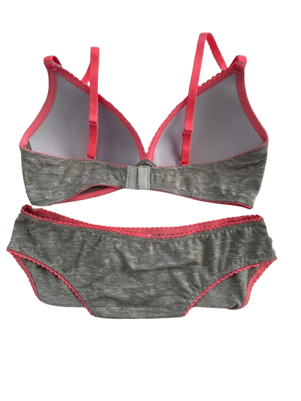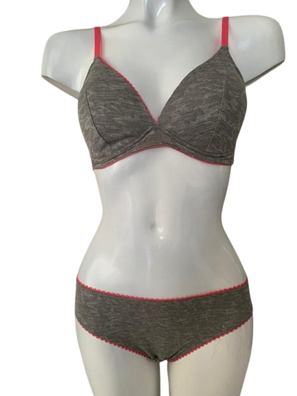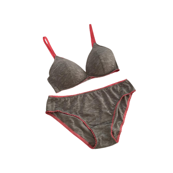 Product Description:Non Wired, Soft Bra + Panty Set with small trim along neckline