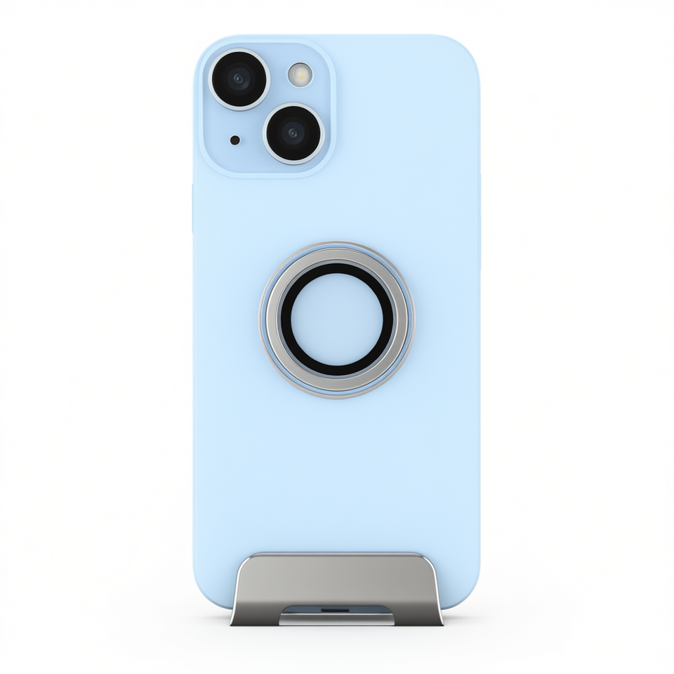 Coque arrière avec support métallique et protection d'objectif pour iPhone 15 bleu ciel