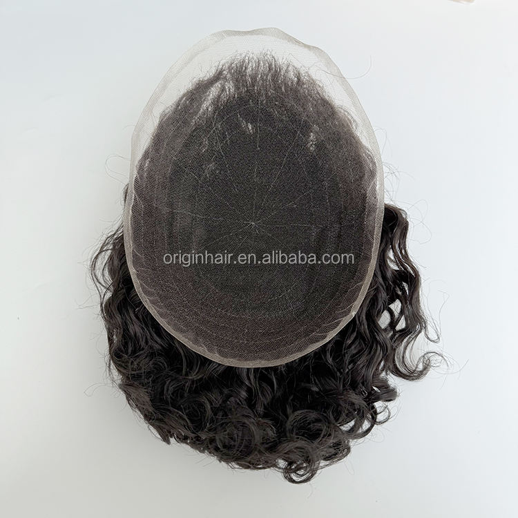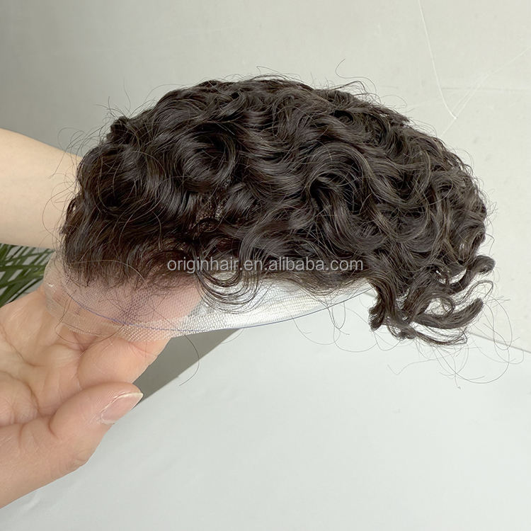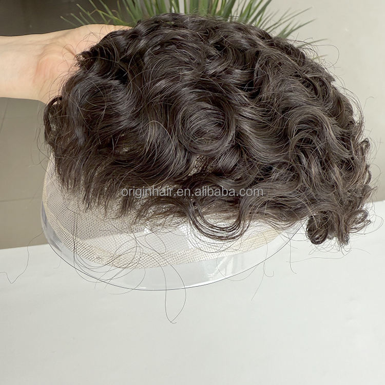 Prothèses capillaires pour hommes en cheveux humains naturels, avec dentelle suisse, style 'Back Hairstyles' et 'Water Wave', 24mm, pour systèmes de remplacement et perruques toupet