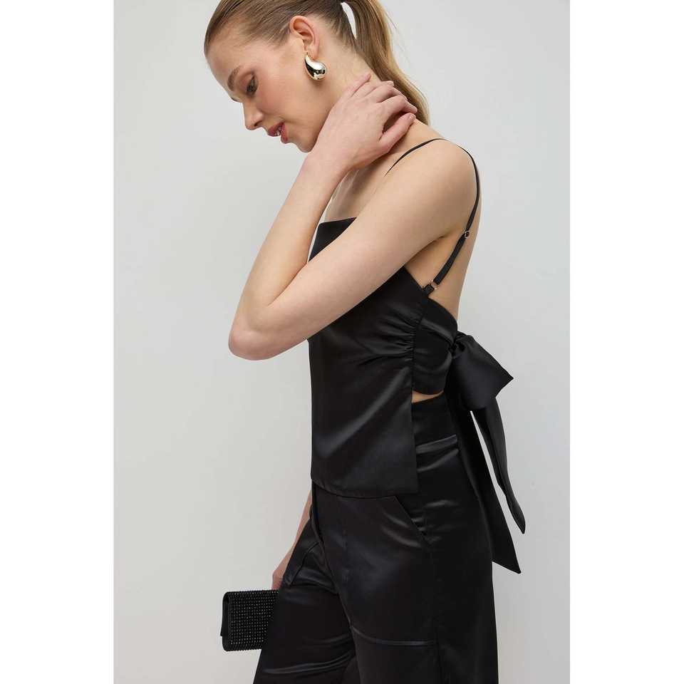 Back Lace Satin Blouse