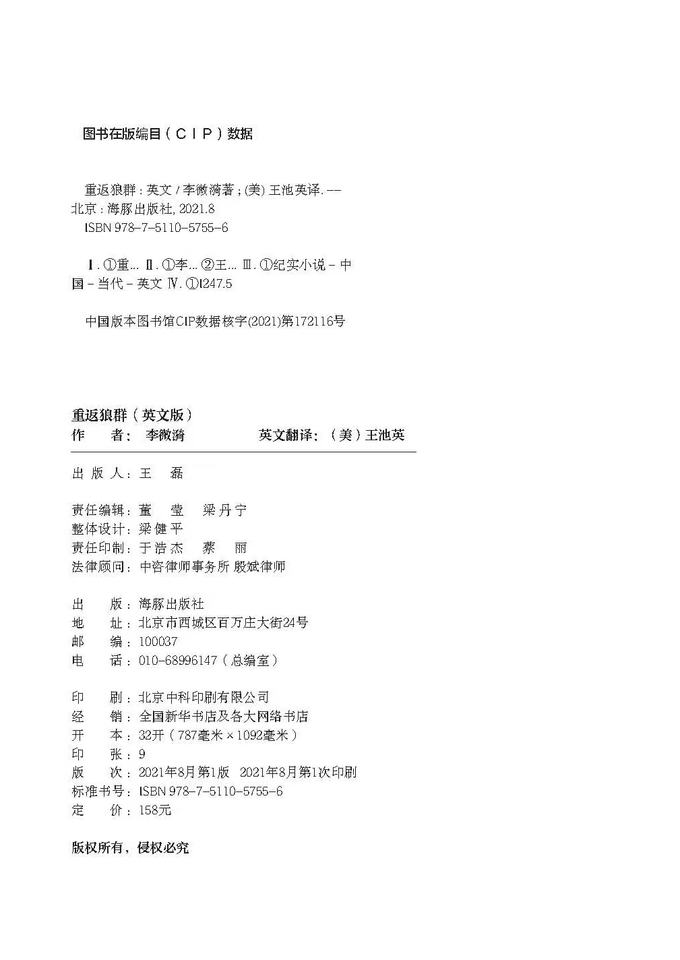 Retour à la nature, Li Weiyi, lien émotionnel, loup humain, documentaire en couleur, fiction, version anglaise, poche - DOLPHIN BOOKS