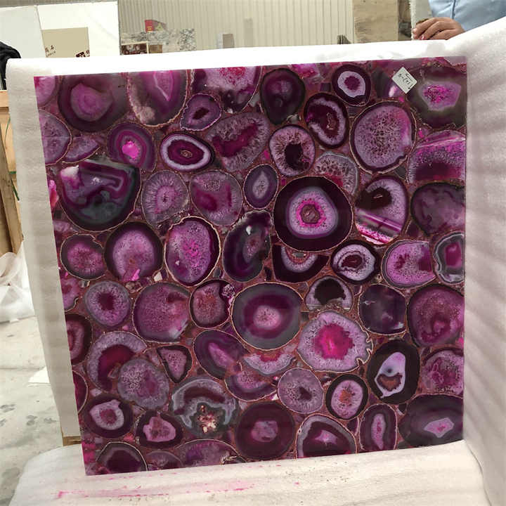 Nom de la pierre:Dalles de luxe en pierre semi-précieuse, carreaux de sol en agate rose