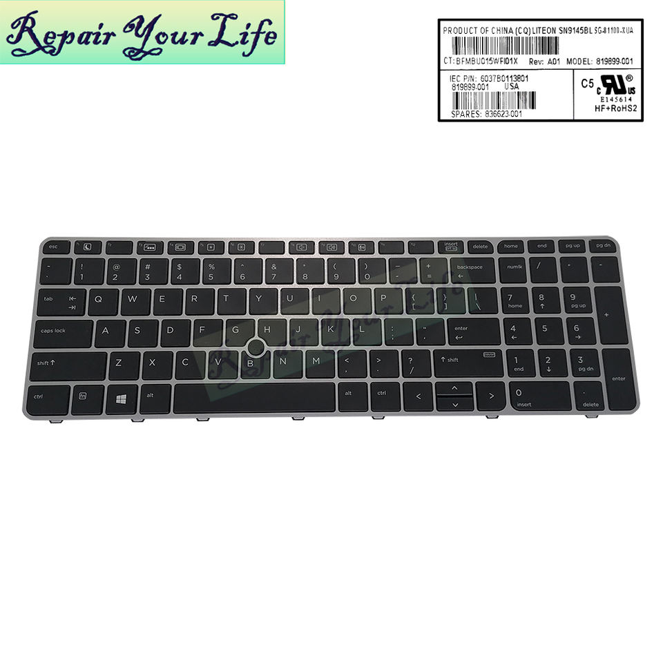 Clavier d'ordinateur portable américain rétroéclairé pour HP EliteBook 850 G3 850 G4 755 G3 755 G4 15U G3 G4 6037B0113801 SN9145BL clavier cadre argenté