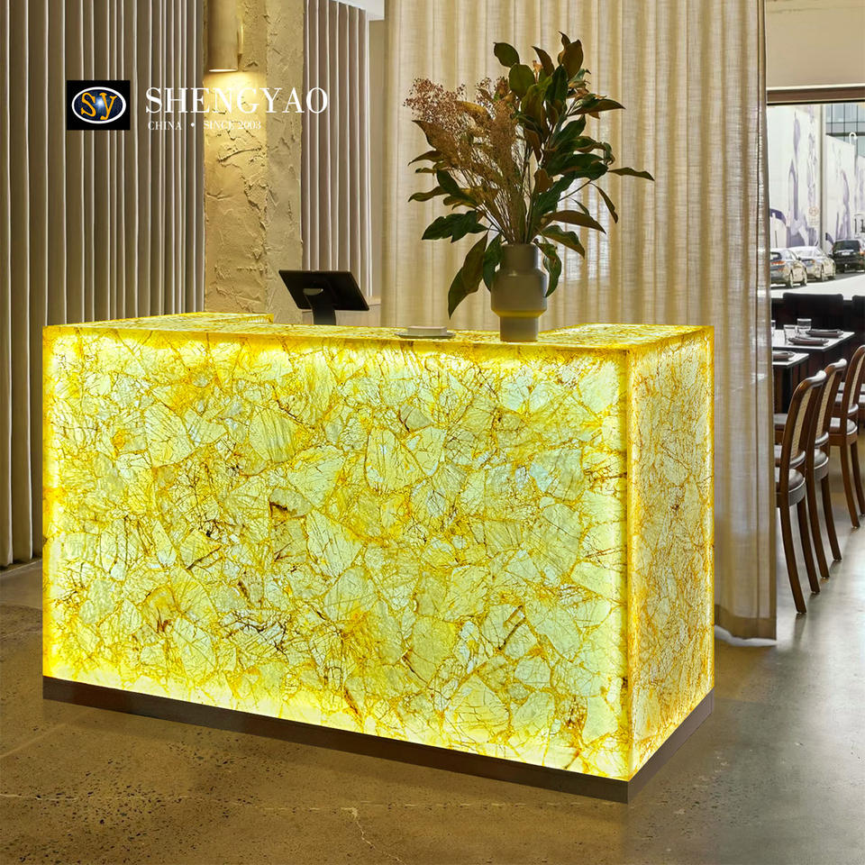 Comptoir de réception en cristal de quartz jaune rétroéclairé, pierre semi-précieuse, avec éclairage LED pour entreprise, hôtel, villa