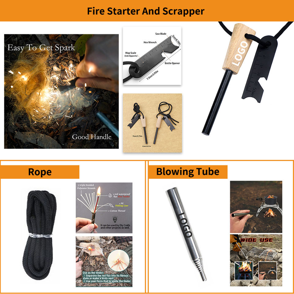 Sac à dos multi-outils pochette de transport Camping feu brut ensemble poche feu soufflet naturel chanson pour les urgences feu de camp outil