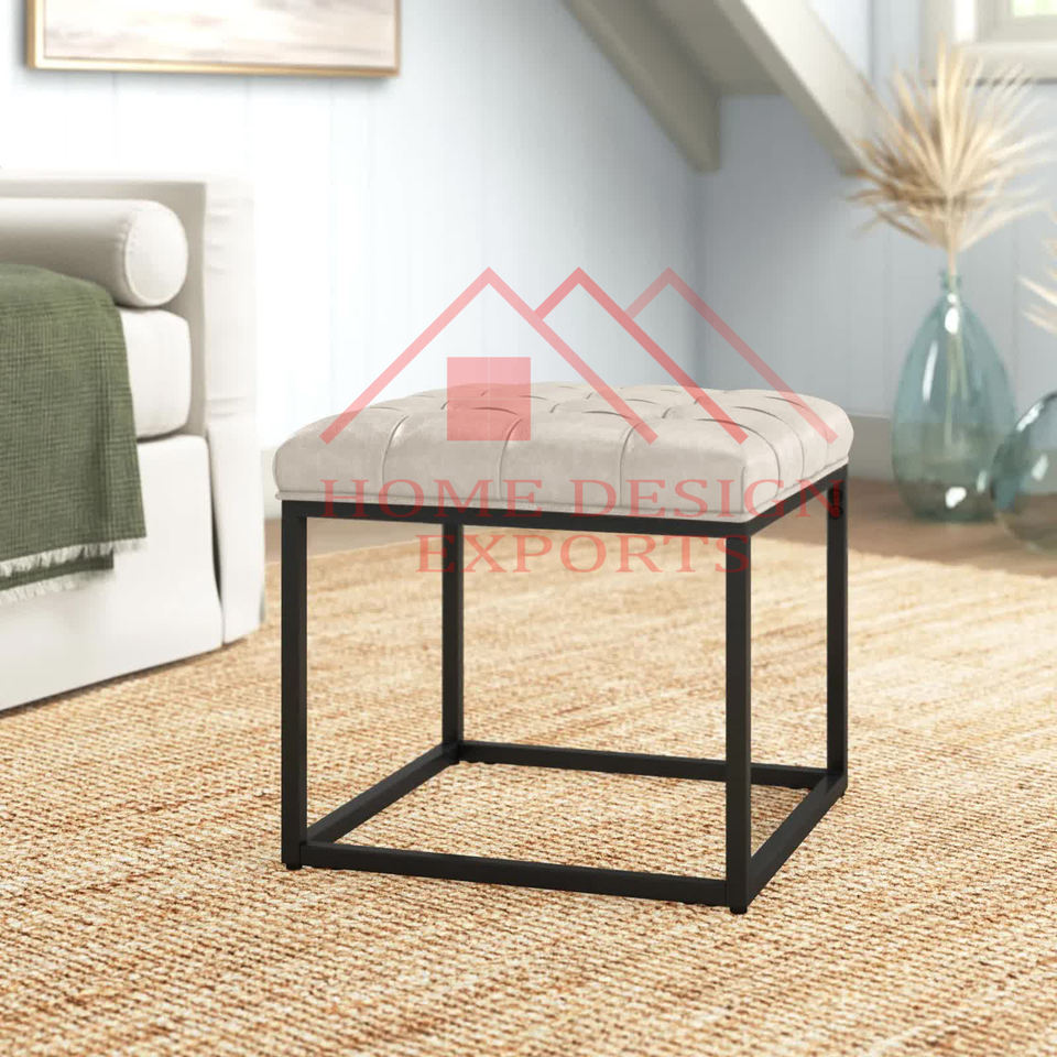 Tabouret ottoman décoratif pour la maison, cadre en métal fait main, dessus en cuir