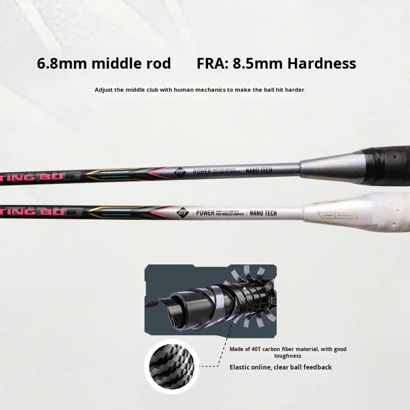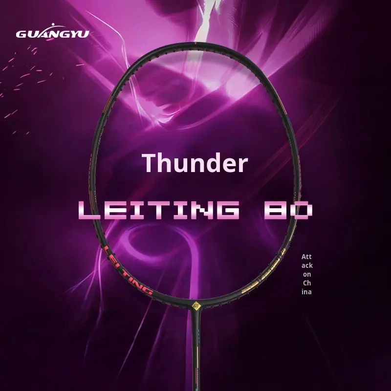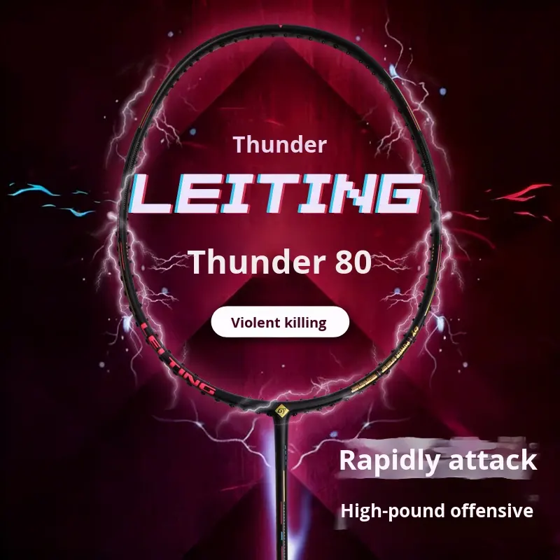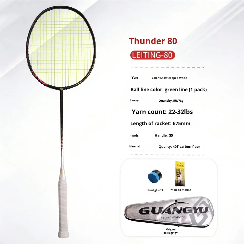 Raquette de badminton Thunder 80 entièrement en fibre de carbone, haute tension, légèrement rigide, type offensif violent, 5U ultra-légère, avancée, G5 PU