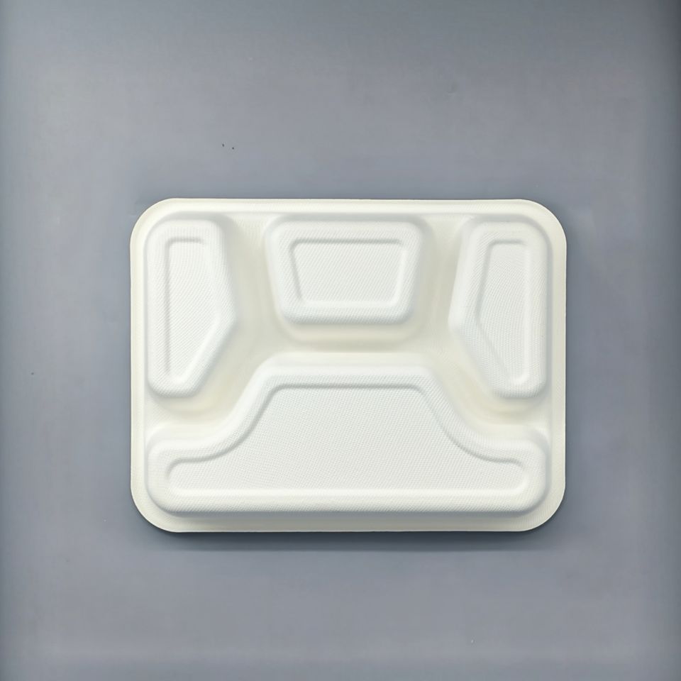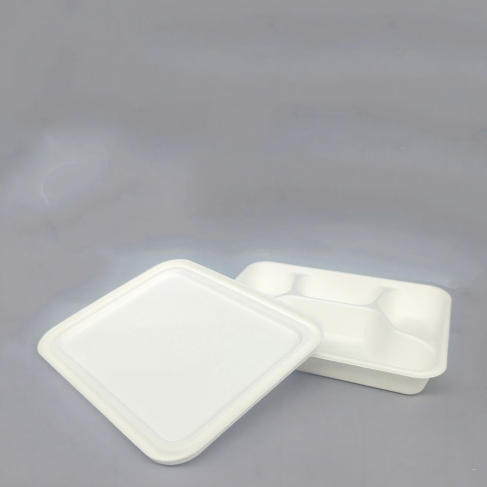 Boîte à lunch à 5 compartiments en bagasse, contenants de stockage pour aliments à emporter, boîte en papier, plateau de service avec couvercles et couvercles en bambou