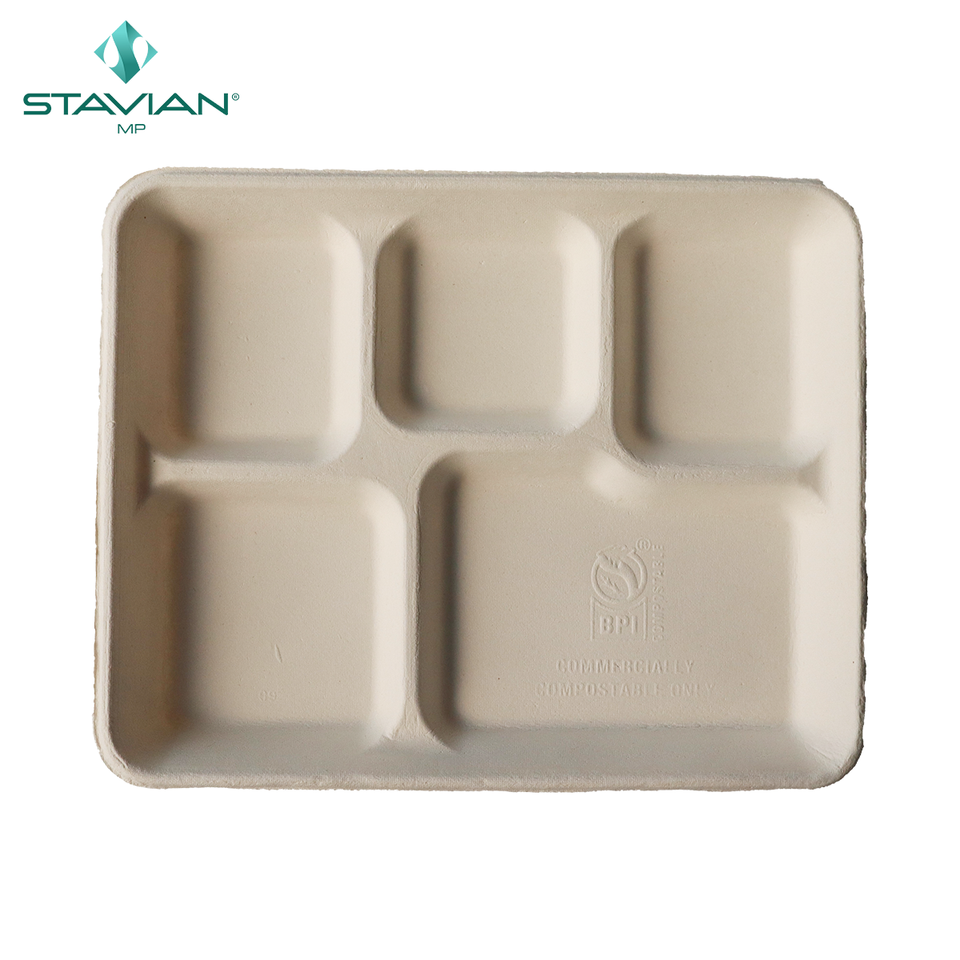 Bagasse Food Trays 530ml 5 Compartments Biodegradable OEM Lunch Box Microwave Safe Bagasse Food Container with Cheap Price