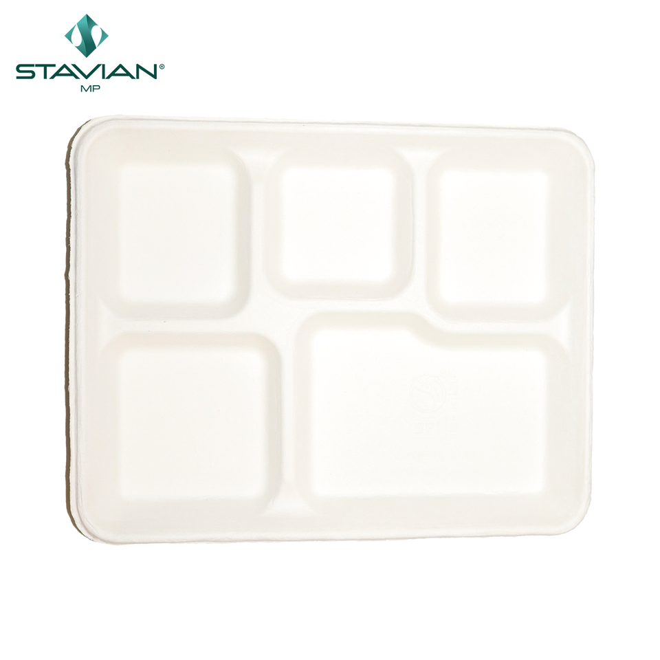 Plateaux alimentaires en bagasse 530ml Boîte à lunch OEM biodégradable étanche Récipient alimentaire en bagasse sans danger pour le micro-ondes avec 5 compartiments
