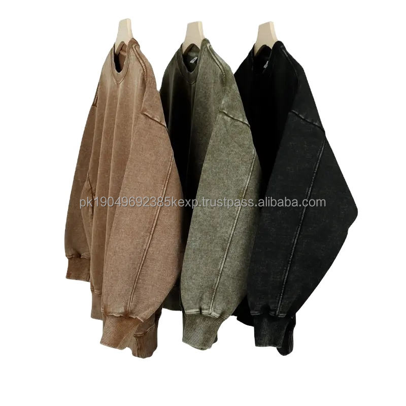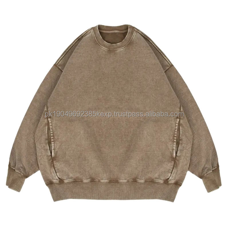 Baggy Fit Winter new design 360gsm crew neck sweatshirts French terry Men's Crew Neck Acid Wash sweatshirt with Pocket