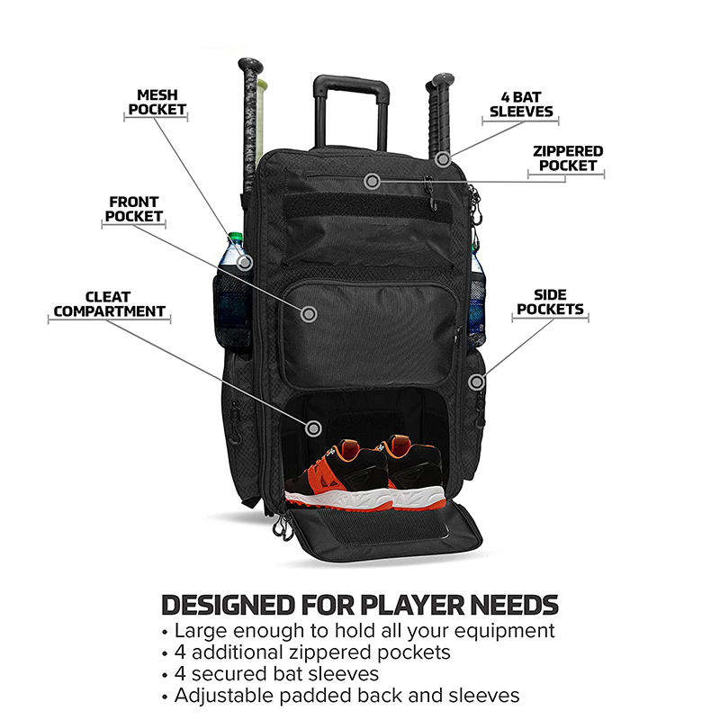 Sac à dos de baseball à roulettes Bagnex avec logo personnalisé, imperméable, en polyester 600D, protection pour clubs de golf, sac de transport pour matériel et chaussures