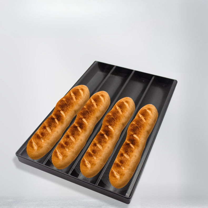 Moule à baguette avec revêtement antiadhésif en marbre, plateau perforé en acier au carbone pour pains faits maison