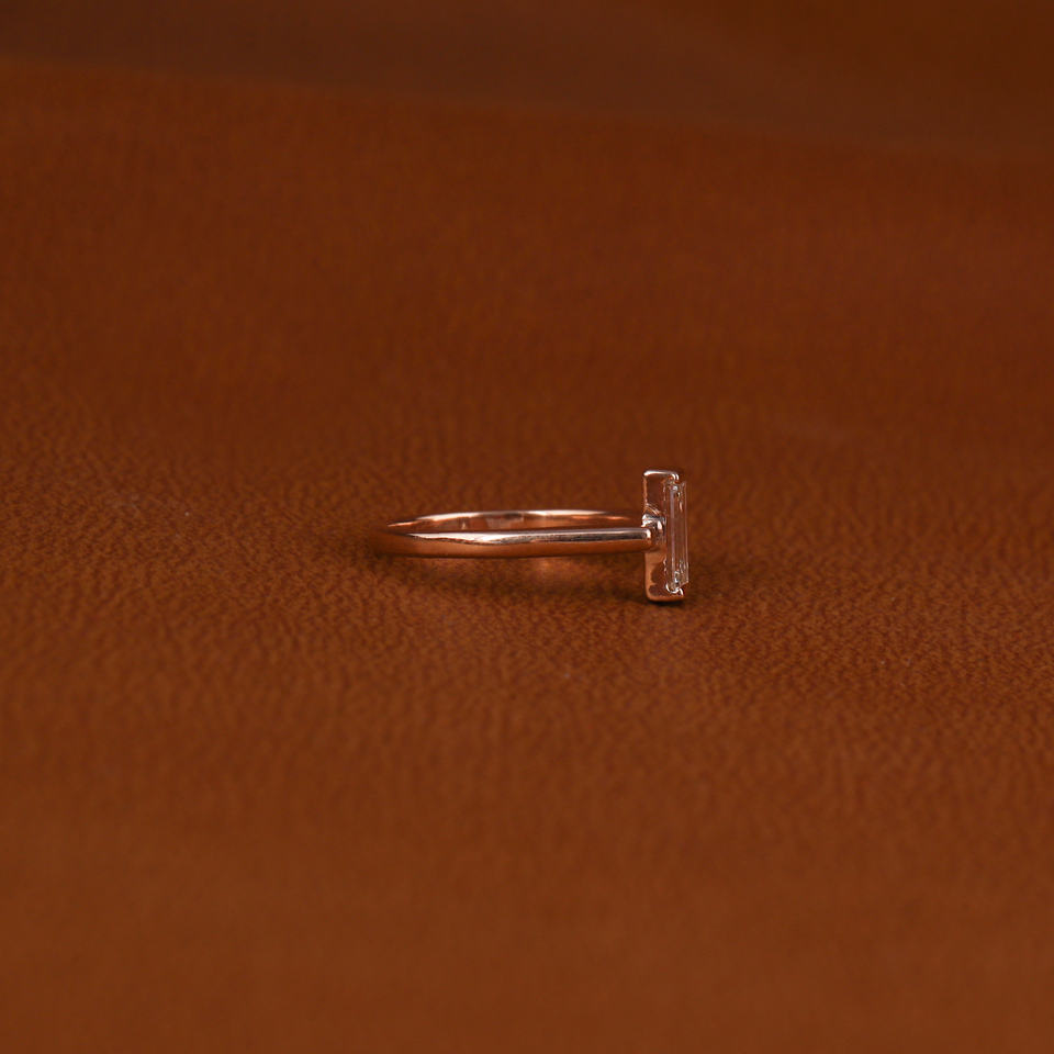 Trendy Simple Classic Design Wedding Ring 14KT Gold Solitaire with Baguette Cut Lab Grown Diamond Custom Hand Made IGI Certified