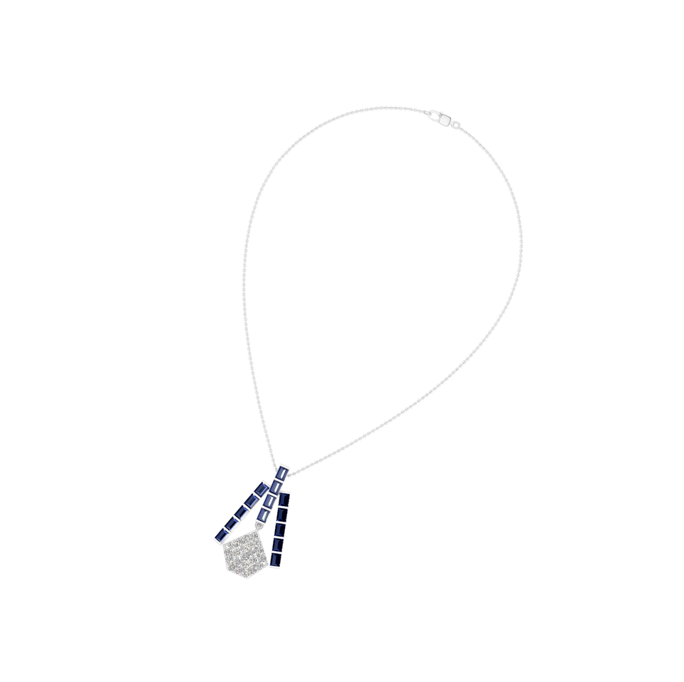 Style:Pentagon-Shaped Diamond and Sapphire Gemstone Pendant