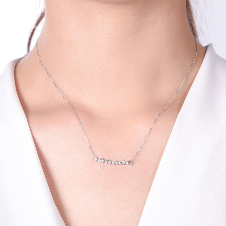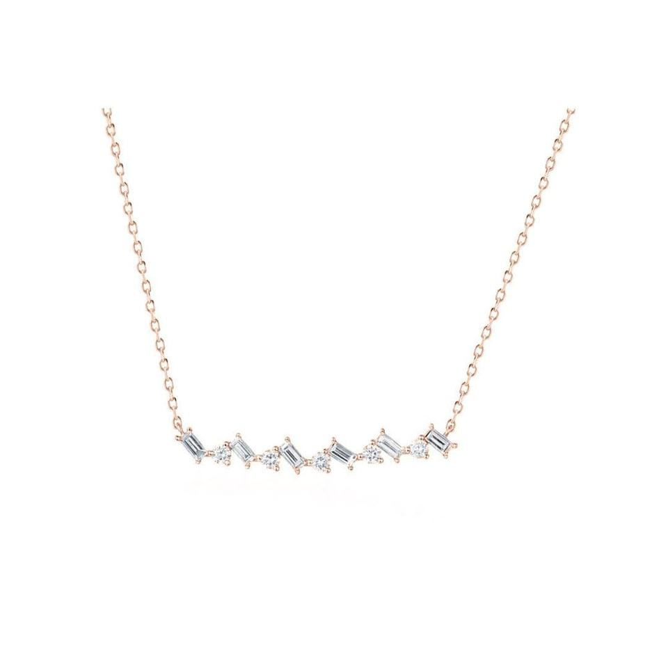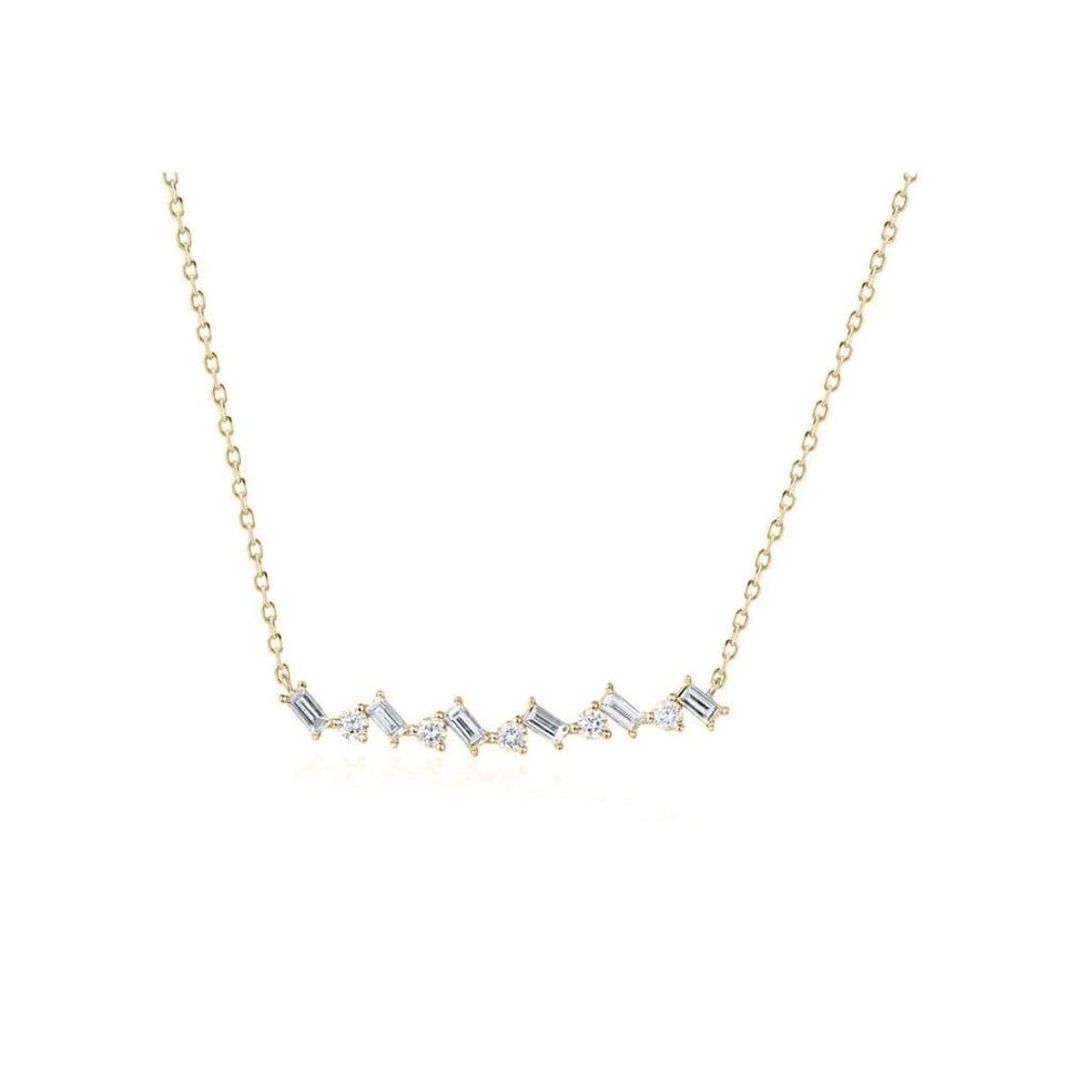 Model Number:Baguette and Round Diamond Bar Necklace-Gold