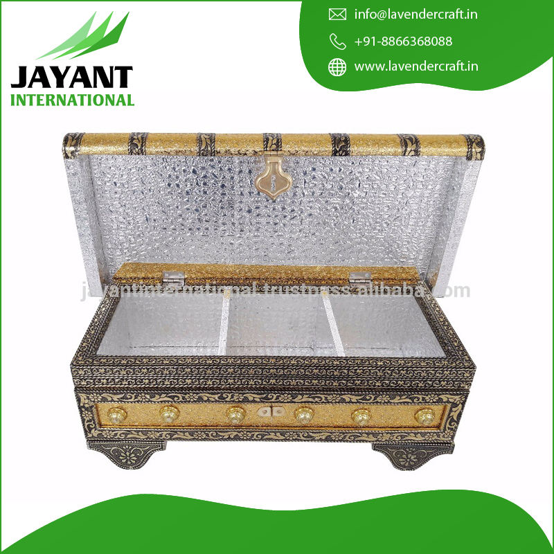 Coffre au trésor Bahubali, finition en cuir artificiel, en bois fait à la main (13 "x 5.5" x 4 "INCH) doré au meilleur prix